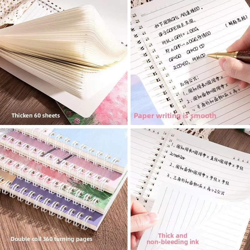 이중 코일 와이어 바인딩으로 페이지를 360° 회전할 수 있어 쉽게 뒤집고 양면에 편평한 필기가 가능합니다.